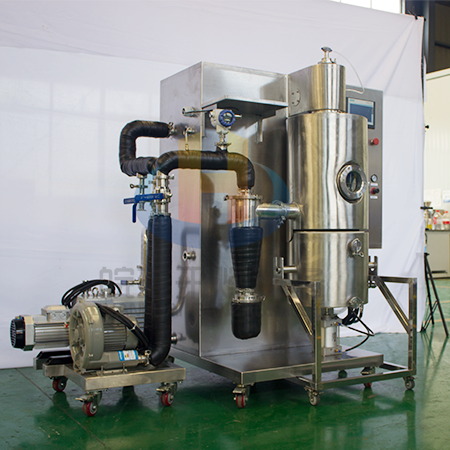 噴霧干燥機(jī)有多種類型。其中,實(shí)驗(yàn)室小型噴霧干燥機(jī)及其主要適用于大學(xué)、研究所和食品醫(yī)藥化工企業(yè)實(shí)驗(yàn)室生產(chǎn)微量顆粒粉末,對(duì)乳液、懸浮液等所有溶液具有廣譜適用性,實(shí)驗(yàn)室小型噴霧干燥機(jī)在真空環(huán)境中干燥,實(shí)現(xiàn)真...